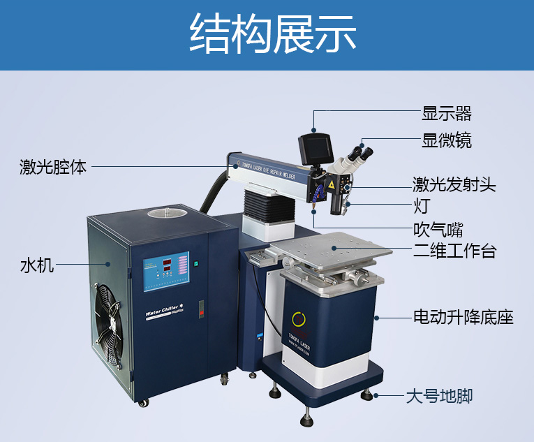 出口型模具激光焊機(jī)是通發(fā)激光公司專門為出口國外客戶使用而設(shè)計(jì)的系列機(jī)型TFL-200E,適用于各類精密注塑模具、壓鑄模具等模具激光修補(bǔ)焊接;同時(shí)也適合鑄件沙孔激光修補(bǔ)、模具崩缺激光修復(fù)、過切加工等的激光修補(bǔ);各類金屬結(jié)構(gòu)件、金銀首飾的激光焊接加工。